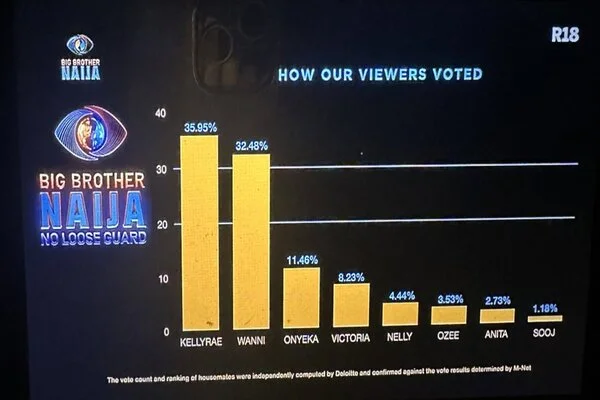 Big Brother Naija Season 9 concluded with KellyRae emerging as the winner, securing 35.95% of the votes. Wanni followed closely behind with 32.48%.