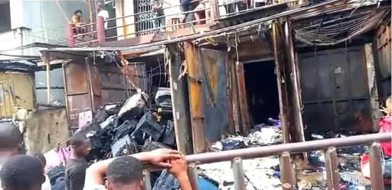 - In a separate incident on Monday, a fire gutted 10 container shops at the Arena Market in Bolade, Oshodi.