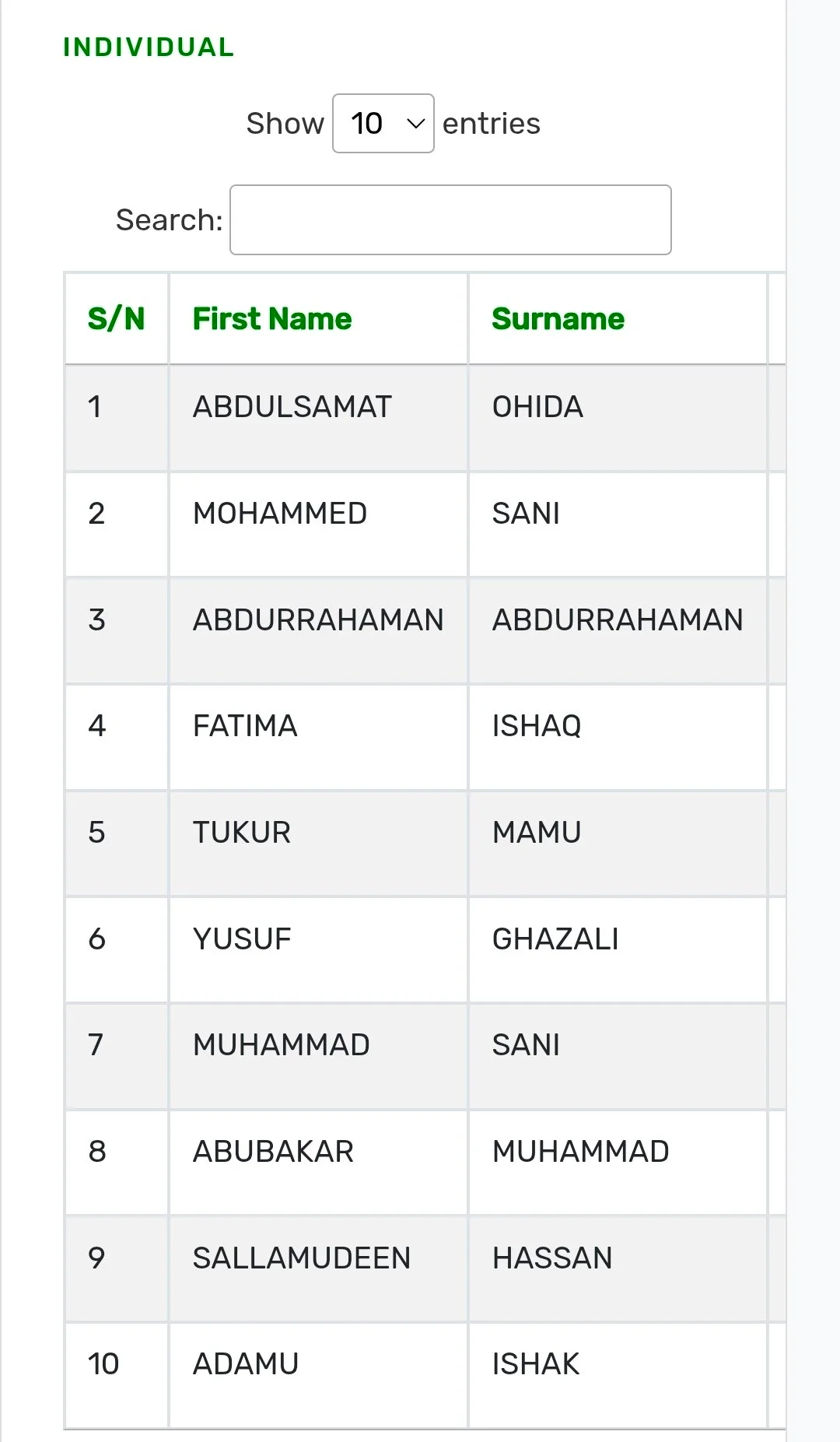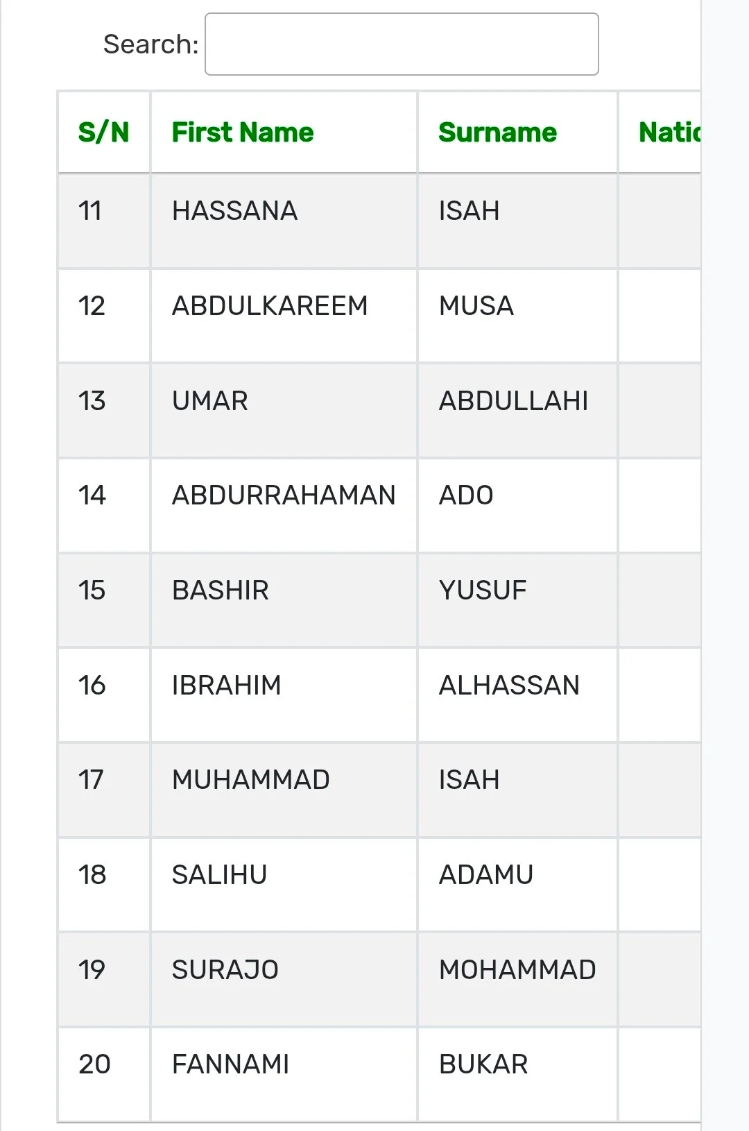 FULL LIST (as published)