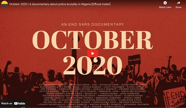 The documentary "October 2020" sheds light on the grave situation of state violence and the atrocities faced by protesters during Nigeria's #ENDSARS demonstrations. The film is produced by the Tiger Eye Foundation, a non-profit organization promoting African investigative journalism.