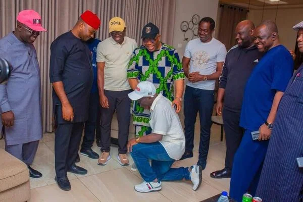 Monday Okpebholo, the newly elected governor of Edo State, expressed gratitude to Senate President Godswill Akpabio by kneeling before him after winning the gubernatorial election. Okpebholo secured 291,667 votes, defeating Asue Ighodalo of the PDP. The APC triumphed in 11 of 18 local government areas in Edo.