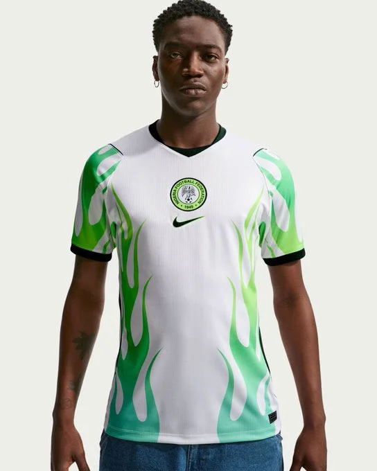 - The green flame motif on the away kit adds a bold, symbolic element reflecting Nigerian spirit and energy.