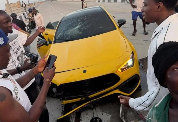 Popular Nigerian skit maker Adesokan Emmanuel, known as Shank, has survived a serious car accident along the under-construction Lagos-Calabar coastal highway. The content creator shared footage of his severely damaged yellow Mercedes-Benz, expressing gratitude to God that the situation was not worse.