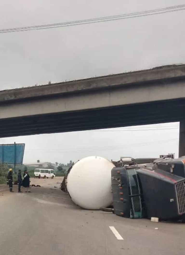An LPG tanker carrying 26 tons of gas has somersaulted in Ibadan, Oyo State, following an incident on the Lagos/Ibadan Expressway. The event, which could have led to a catastrophic explosion, highlights the constant threat of accidents on Nigerian roads.