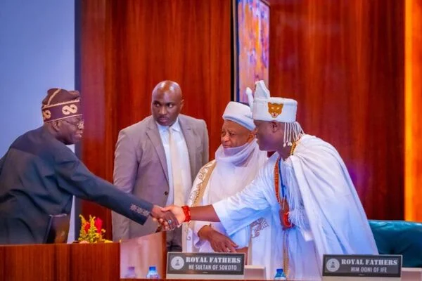 President Tinubu met with traditional rulers, including the Sultan of Sokoto and Ooni of Ife, to discuss strategies to prevent a nationwide protest against economic hardship. The meeting, attended by top officials, aims to address public grievances and ensure stability. Traditional leaders are urged to help mediate and counsel restraint.