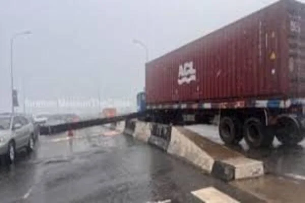 Motorists in Lagos have been advised to seek alternative routes after a container-laden truck crashed at the Lekki-Ikoyi Link Bridge on Tuesday evening, causing major traffic disruption. The truck, carrying a 40-foot container, struck the steel height restriction barrier at the bridge entrance near Admiralty Road, damaging the structure and blocking access to the bridge.