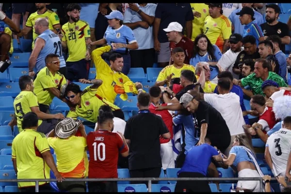 Uruguay players clash with Colombia fans after Copa America semifinal loss. Drinks thrown at players escalate into a brawl. CONMEBOL yet to comment. Colombia advances to face Argentina in final.