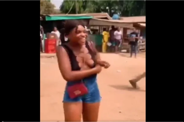 In a viral video, a young woman faced harassment from a group of men at a bus park over her outfit. The men demanded she change, poured water on her, and taunted her. Despite the woman's resistance, the crowd around grew, and she eventually left on a bike.