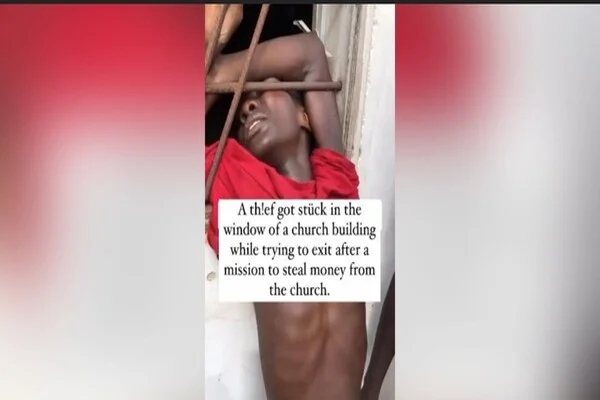 In a bizarre incident, a suspected thief attempted to rob a church of its tithe and offer money but ended up trapped in a window during his escape. The incident, captured in a viral video, showed the perpetrator stuck, reportedly due to a supernatural intervention as claimed by witnesses.
