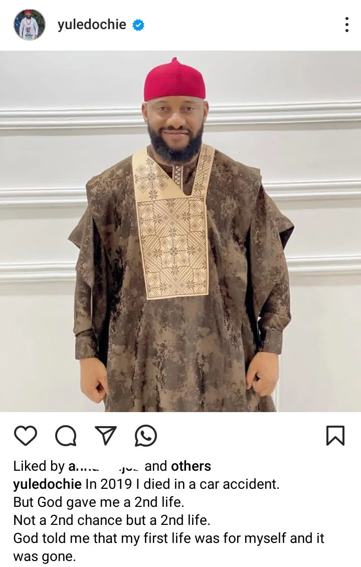Nollywood actor Yul Edochie has shared a miraculous account of surviving a fatal car accident in 2019. According to the actor, he experienced death after the crash but was granted a second life by God. In a recent Instagram post, Edochie expressed gratitude for the divine intervention, stating that God instructed him to live his new life for His glory, His word, and for the betterment of humanity.
