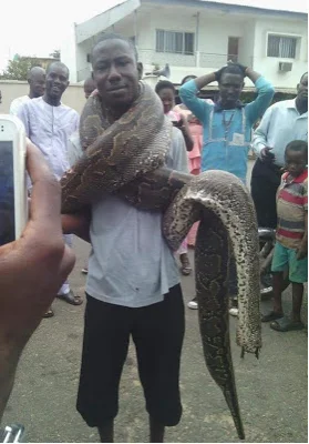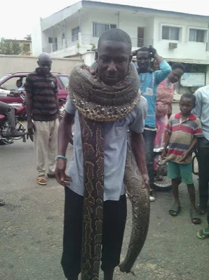According Lindaikeji’s blog, this man killed a huge snake at Laula Asalasi in Ilorin in Kwara state. He thereafter showed off with his captive. See photos: