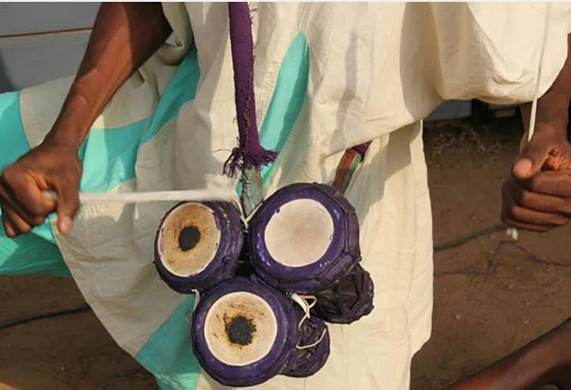 3. Omele ako: Fondly called 'Omele', it is known as the “Sakara”drum. It is a shallow drum with a circular body made with baked clay. Goat skin is used in making the heads of the drum while spaced pegs around its body are used for tuning. They are used during wedding ceremonies, traditional coronations and festivals.