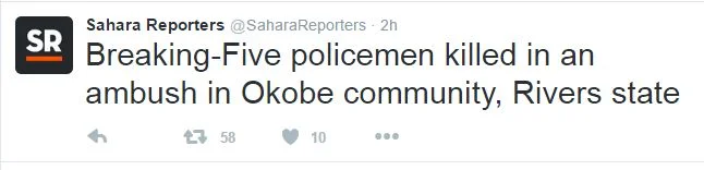 Tension in Rivers state as unknown gunmen killed five policemen during ambush in Okobe community of Rivers state.