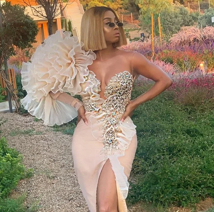 Toke Makinwa wows in super enthralling owambe outfit to her brother's wedding that held in Greece. She looks all glammed up in the cleavage-baring and thigh revealing outfit.....
